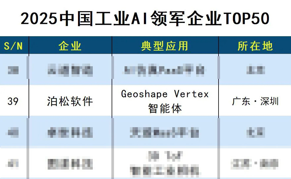 硬实力!泊松软件荣登《2025中国工业AI领军企业TOP50》!